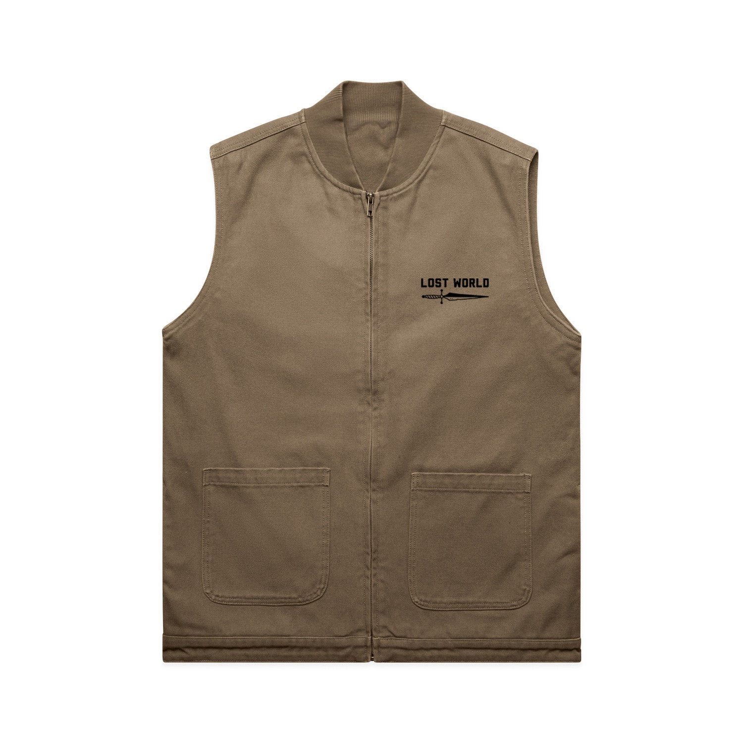 - Dagger embroidered onto Heavyweight Duck Cotton Canvas Vest Jacket with